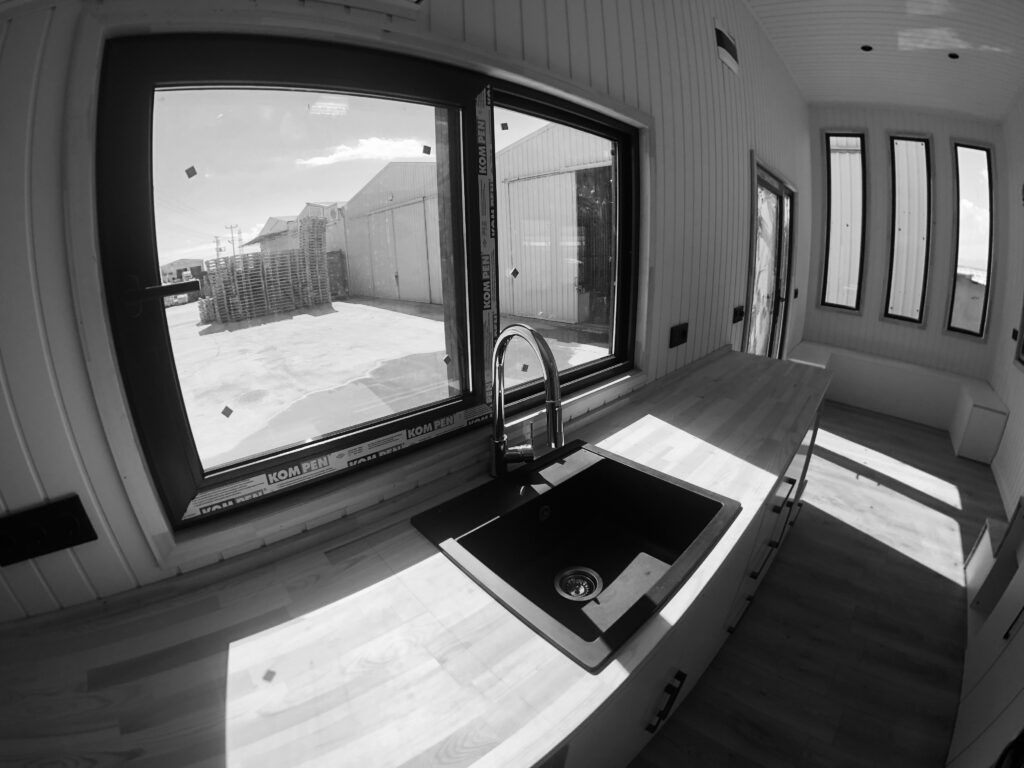 Yüksek kaliteli kenet saçı, enerji tasarruflu 4+12+4 tamperli çift camlı, sürgülü 10 adet pencereleri, sektörün önde gelen markası Kompen’in özel tasarımı doğramaları ile gün ışığından maksimum fayda.